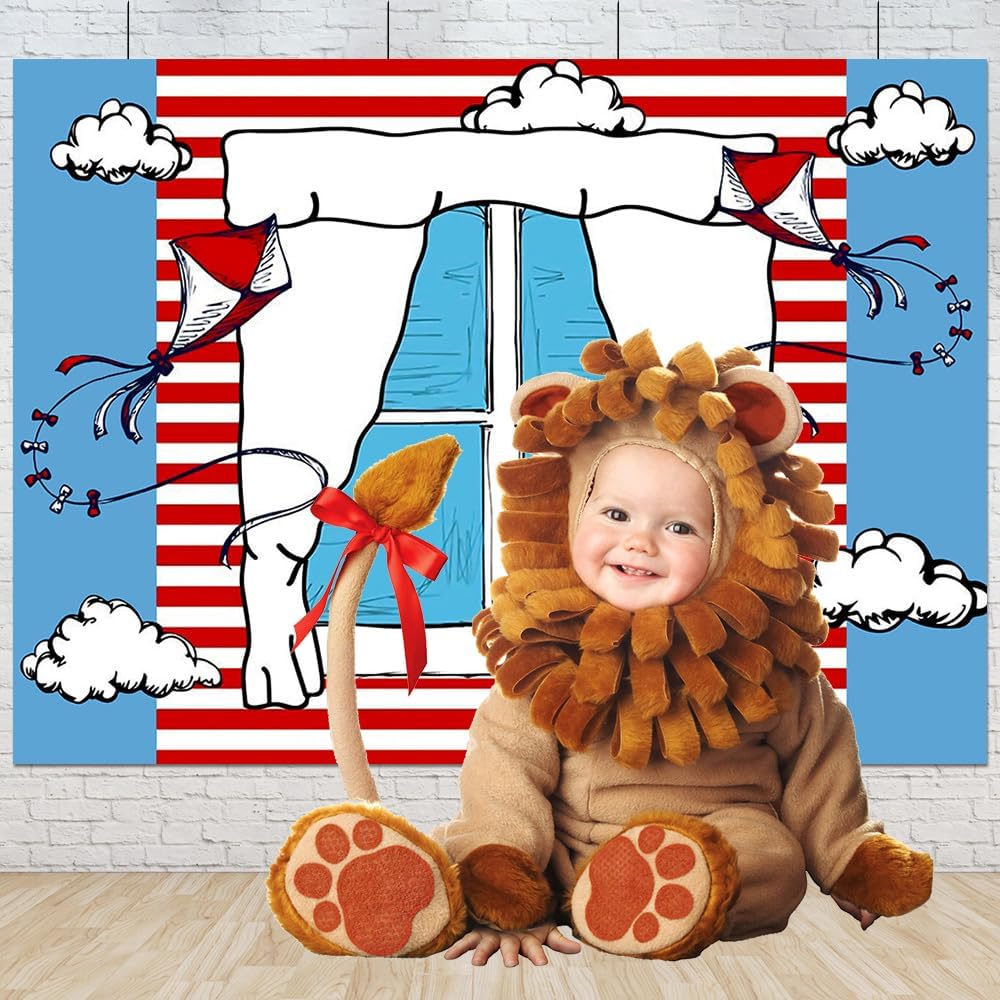 Cartoon Blue Window Backdrops for Photography Kids Birthday Party Background 8x6ft Blue Red Kite Striped Kids Party Backdrop Boys Girls 3st Birthday Decorations Cake Table Banner Photo Booth Props