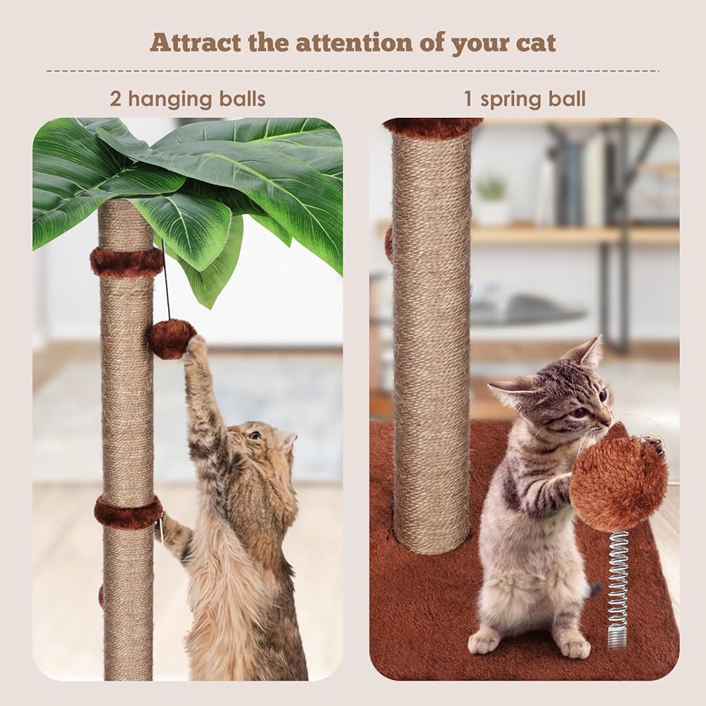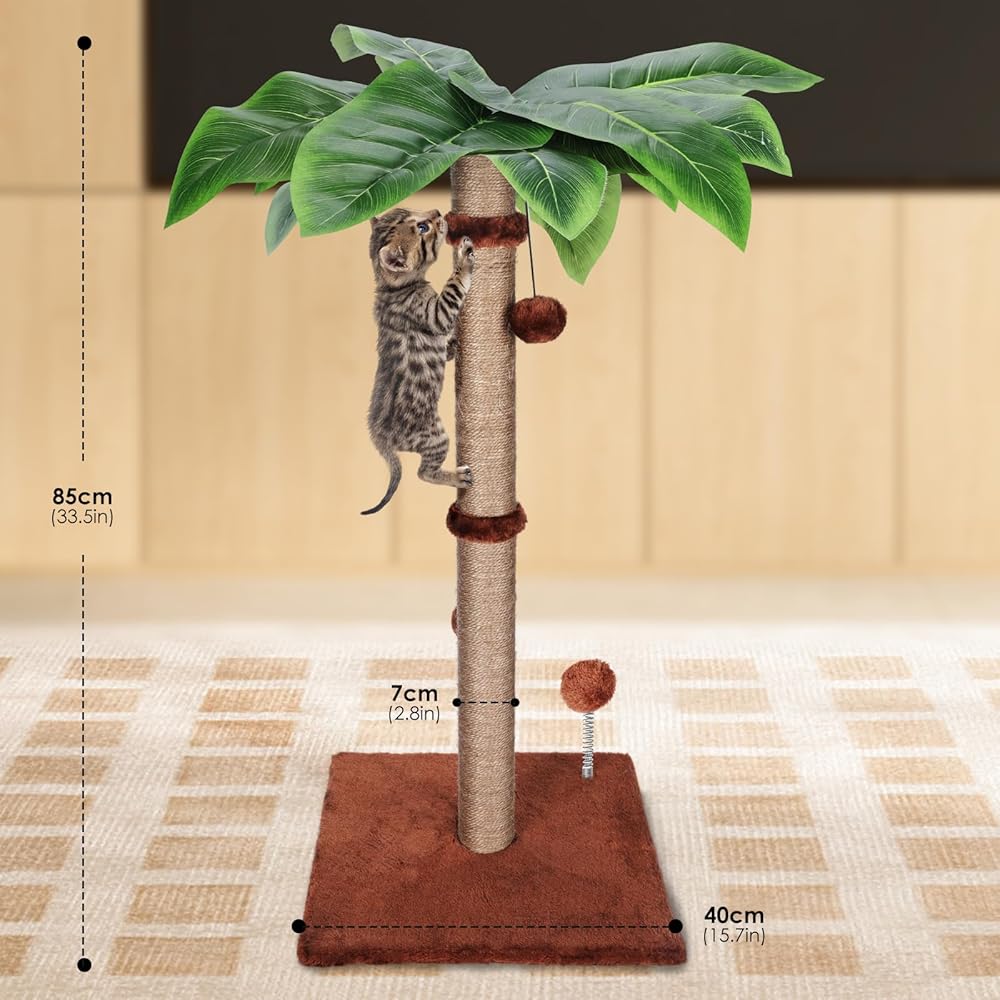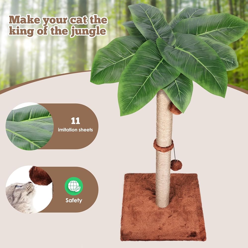 🌴[Home Decoration&Protection]: A cat scratching post will prevent the cats scratch furniture and cause damage, so as to protect the furniture. Besides, the 3D emulation technique of the green leaves makes the cat scratching post looks like a beautiful tree. You can put the scratching post anywhere to decorate your home with a nature style.