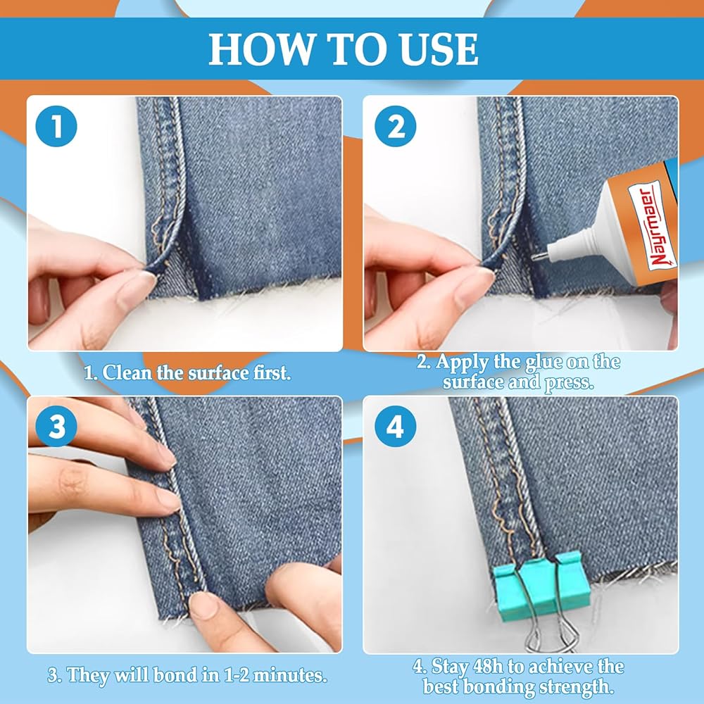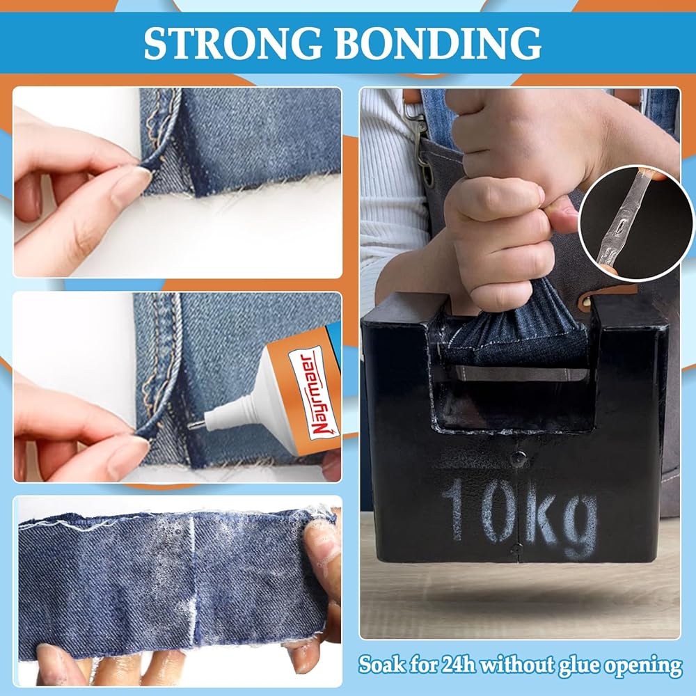 تطبيق واسع: يعتبر غراء القماش للرقع مثاليًا لجميع الأقمشة والقطن والفانيلا والدنيم والجلود والبوليستر والدمى والقماش والنايلون وغيرها من المواد.