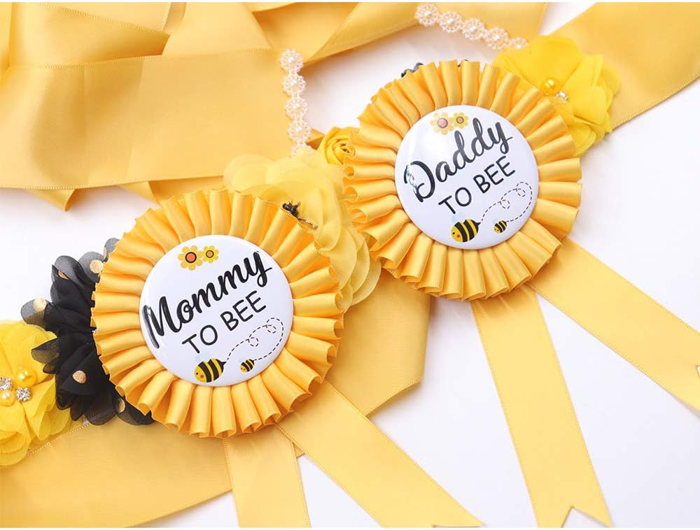 Button Pins: Flower and bee shape with black "Daddy TO BEE"/"Mom TO BEE" lettering that wrapped the baby under your heart or a reminder of your most special day.