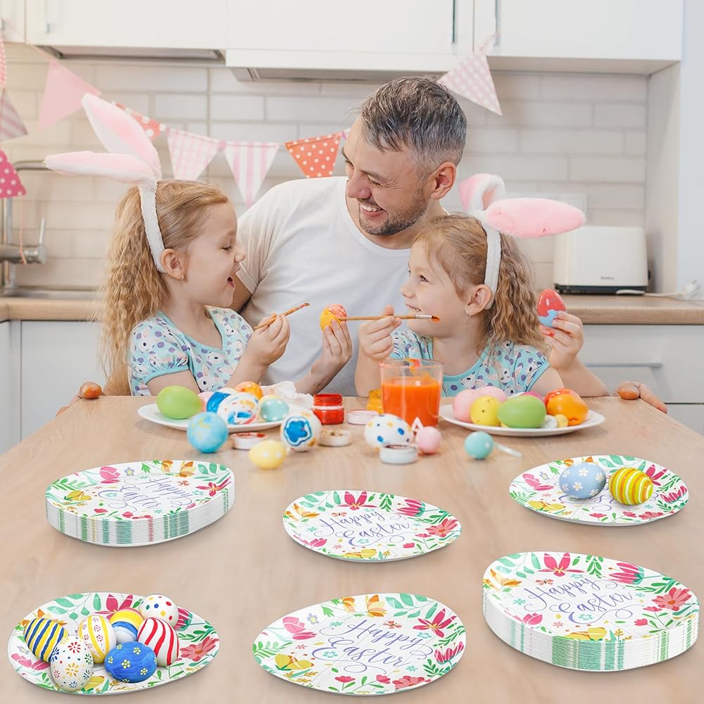 Perfect size of Easter dinner Plates and Dessert Plates are great for Meals, fruits, Cakes, Desserts, Salads, and more. Say goodbye to washing dishes after you use disposable paper plates on Easter celebration