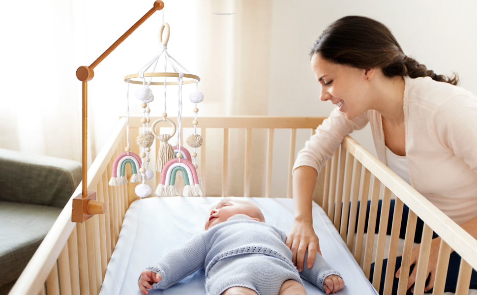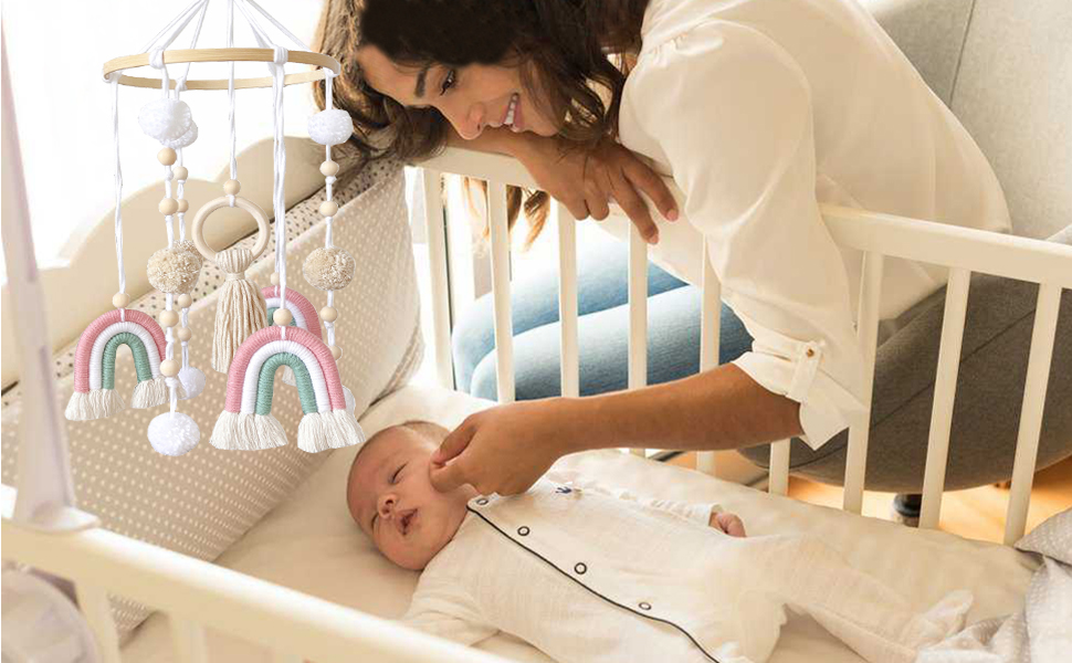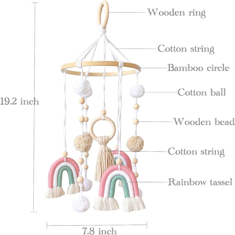 ⇰ Gender Neutral Design: Our adorable baby crib mobile is designed with neutral color tones that make as great of a nursery mobile for baby boys and girls; Macrame rainbow, cotton ball, and tassels will look good in baby's room and perfectly match their bedding and accessories decor.