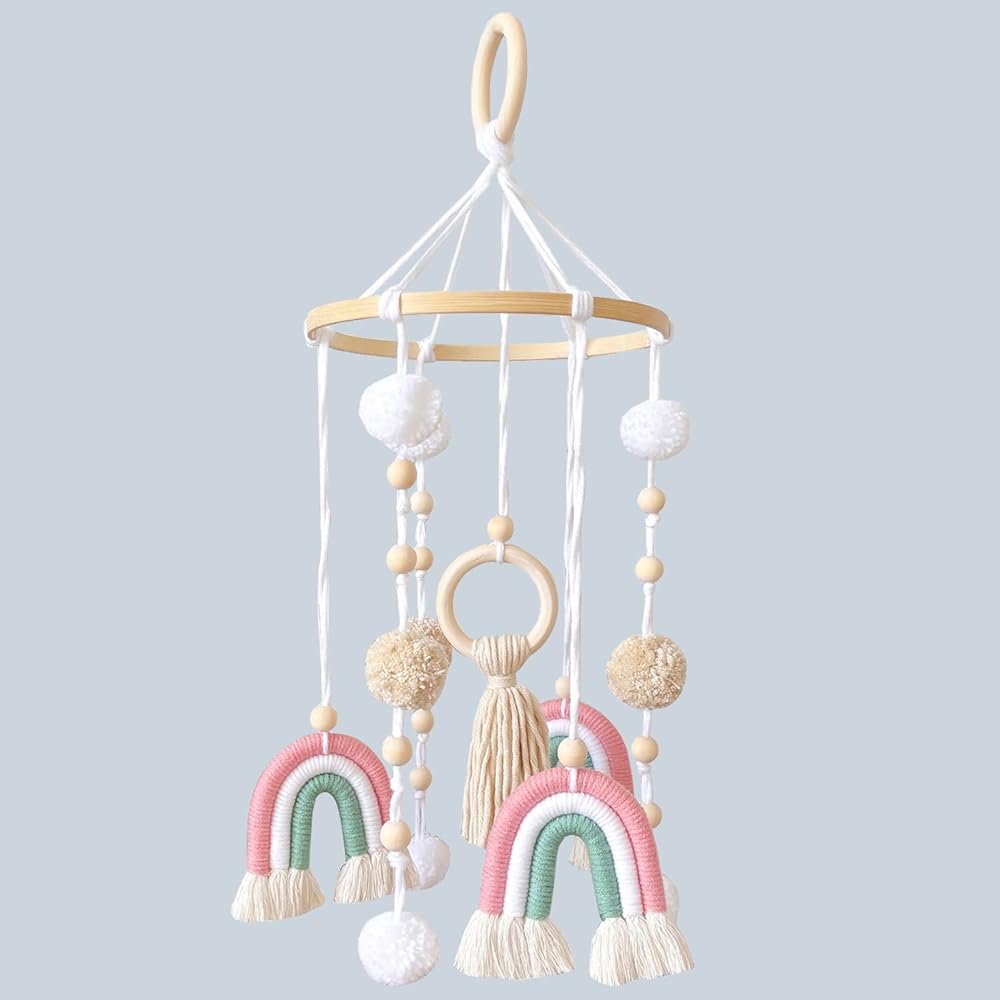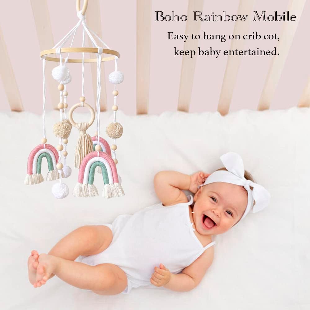 Baby Mobile for Crib, Rainbow Boho Crib Mobile Gender Neutral Nursery Mobile Decor for Infants Boys and Grils, Hanging Baby Crib Mobile Boho for Infant Bedroom Nursery Ceiling Decoration - Pink