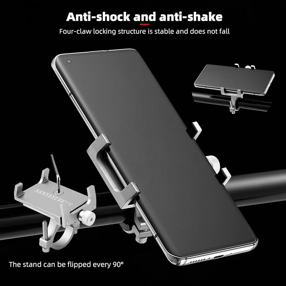 Anti-shock and Anti-shake: Four-claw locking structure is stable and does not fall. The sturdy handlebar mount offers a secure grip, keeping your phone firmly in place during rides, whether you're cycling through city streets or cruising along winding mountain trails.