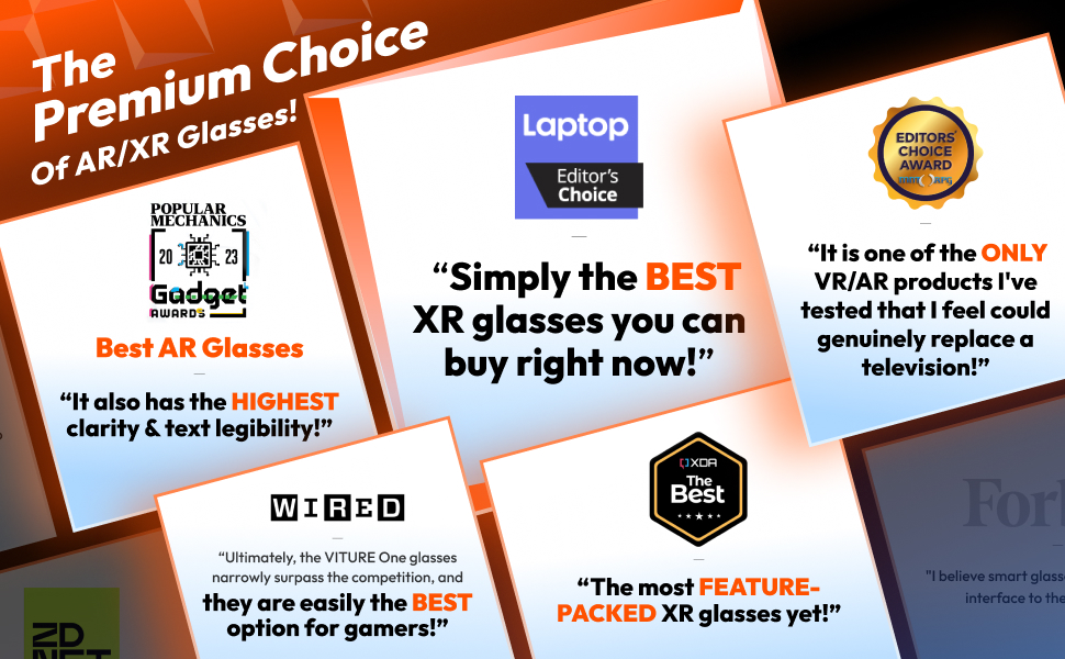 【See The Future: The First XR Smart Glasses to Use Adjustable Electrochromic Film】 VITURE One XR Smart Glasses display a seamless, pixel-free virtual screen right before your eyes and are compatible with any USB-C device capable of video and power output (Compatible with Steam Deck, ROG Ally, MacBook, iPad, and many Android phones).