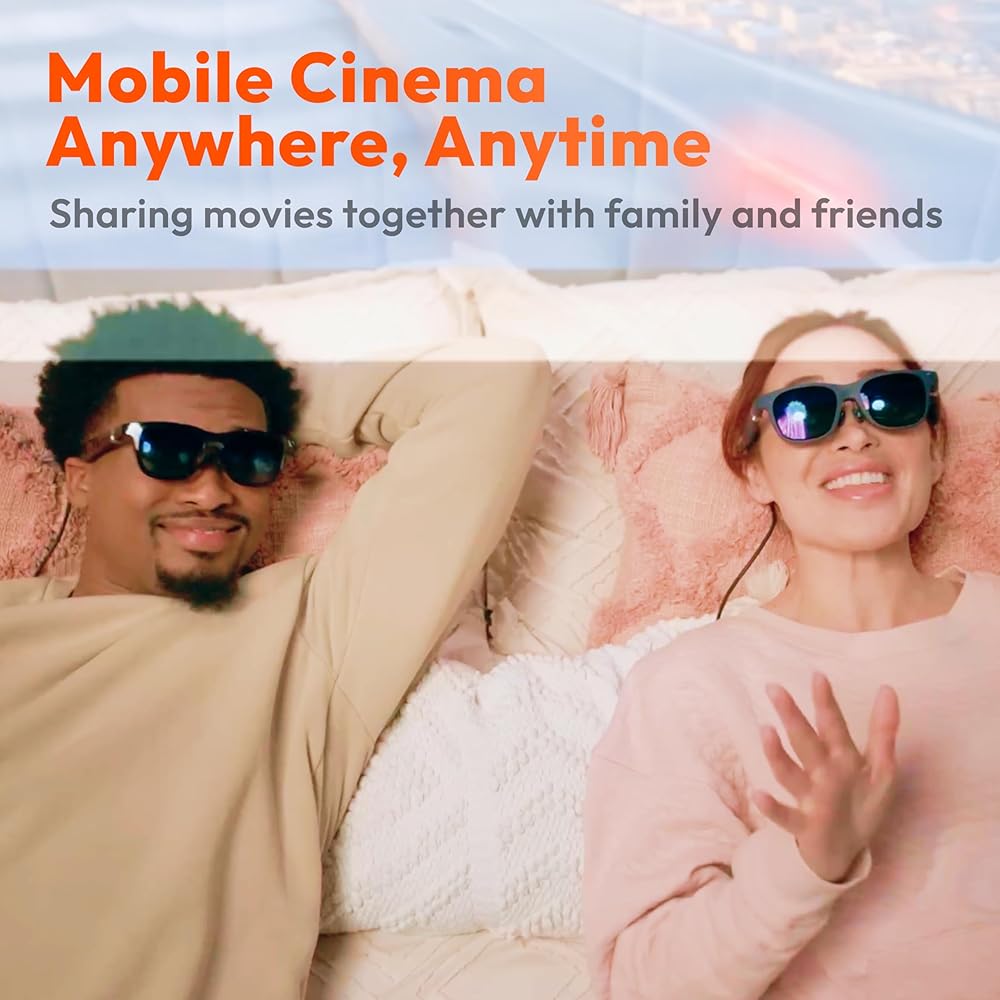 【Two Glasses, One Screen】 Play local co-op games or watch a movie together in XR. Connecting two VITURE One XR Smart Glasses to the same device with the Mobile Dock is just like going out to the theater, but without the sticky seats.