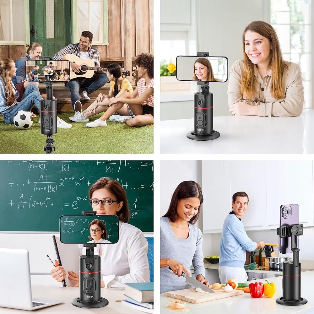 【Standard 1/4 Inch Tripod Connector】Shooting gimbal base can be easily detached and replaced with a standard 1/4 screw interface, making it compatible with other tripods. This means you can use this smart face tracking mount with other tripods for height adjustments or different shooting angles, providing more flexibility and convenience for your video recording needs.