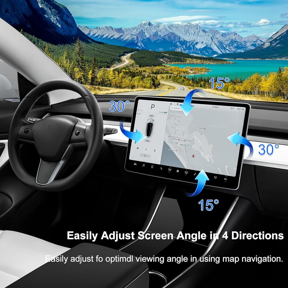 【Rotation】It can be adjusted 30 degrees left and right, 15 degrees up and down, any direction to maintain a parallel state, not tilt. Break the Tesla single screen fixed, feel free to adjust the comfortable angle, as far as possible to reduce the direct sunlight, affecting the screen view.