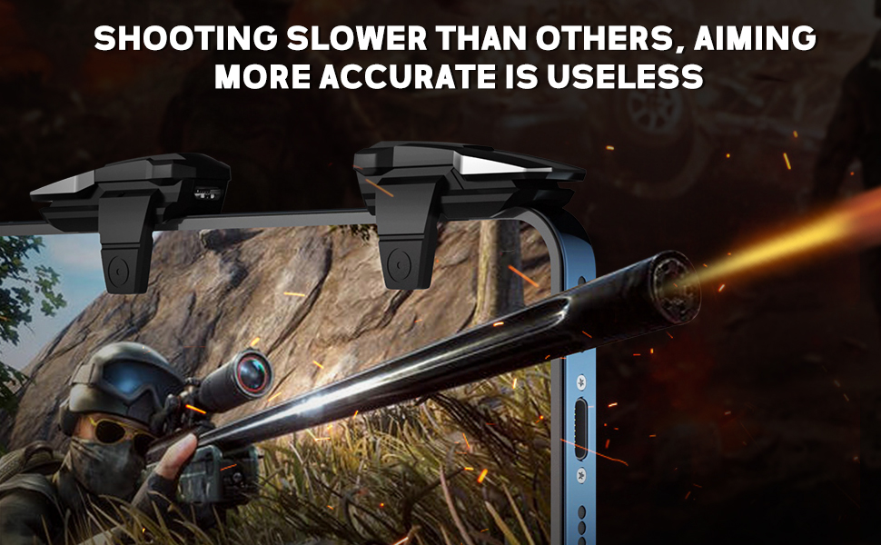 【High Sensitivity】Mobile trigger is easy to use and highly sensitive, using our mobile game controller, you can move, adjust the angle, aim and shoot with your left and right hand thumb and index finger at the same time.