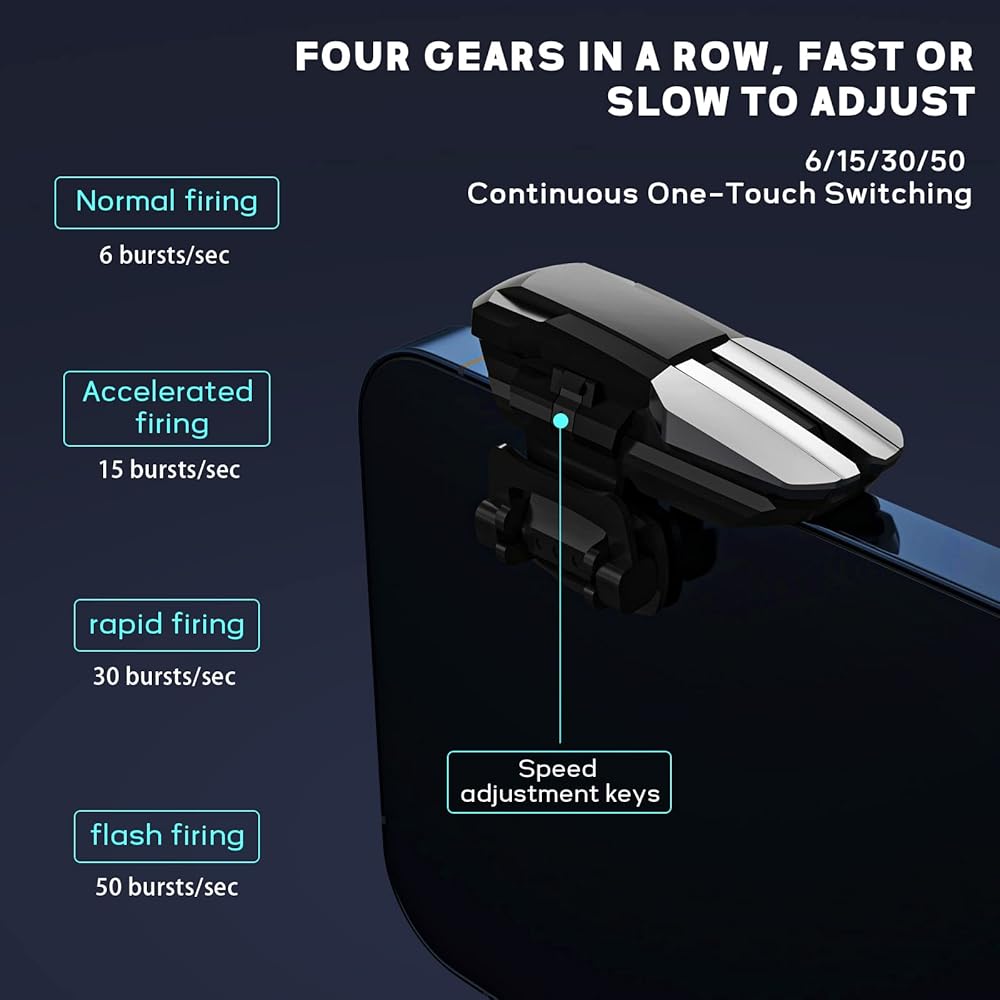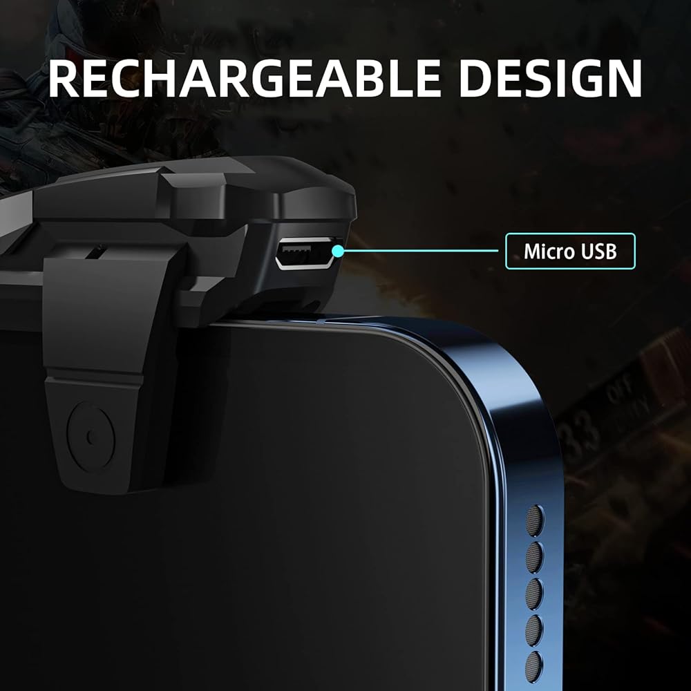 【Dual trigger design】: Mobile trigger games no need to switch between click mode and rapid fire mode. It has 4 rapid fire modes with 6/15/30/50 clicks per second, allowing DMR to shoot like an AR.Built-in rechargeable battery,lasts for 40 minutes playing time