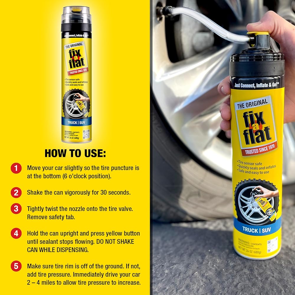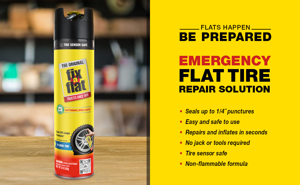 Flats happen, so be prepared with Fix-a-Flat, an easy-to-use, better alternative to the spare tire and perfect for roadside emergencies. This 20oz can is perfect for large/SUV tires