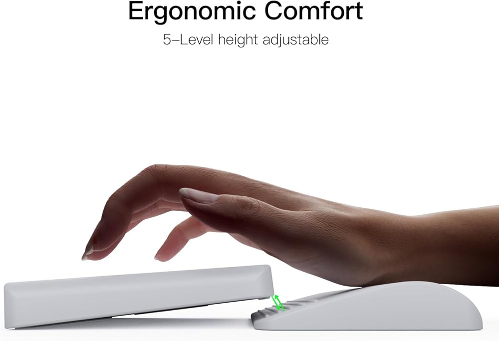【Ergonomic Wrist Cushion for Enhanced Comfort】The magic trackpad case comes with a soft silicone wrist rest for enhanced ergonomic comfort. With its arched design, the wrist cushion pairs with the mac trackpad perfectly, providing 5-level height adjustment to alleviate wrist pressure and prevent discomfort during extended use.