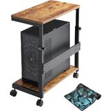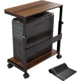 Multifuctional Design: Efficient 2-tier design,Wider and More Stable.The bottom shelf stores the PC tower while the top shelf holds printers, plants, documents, and magazines. Pegboard on back organizes office supplies such as power strips, etc. Mousepad included, this CPU stand can be used for mouse operation & comfortable arm rest. Can also be used as mobile laptop stand or rolling computer desk that allows you to settle into any place for work like bed and sofa, ready to set up