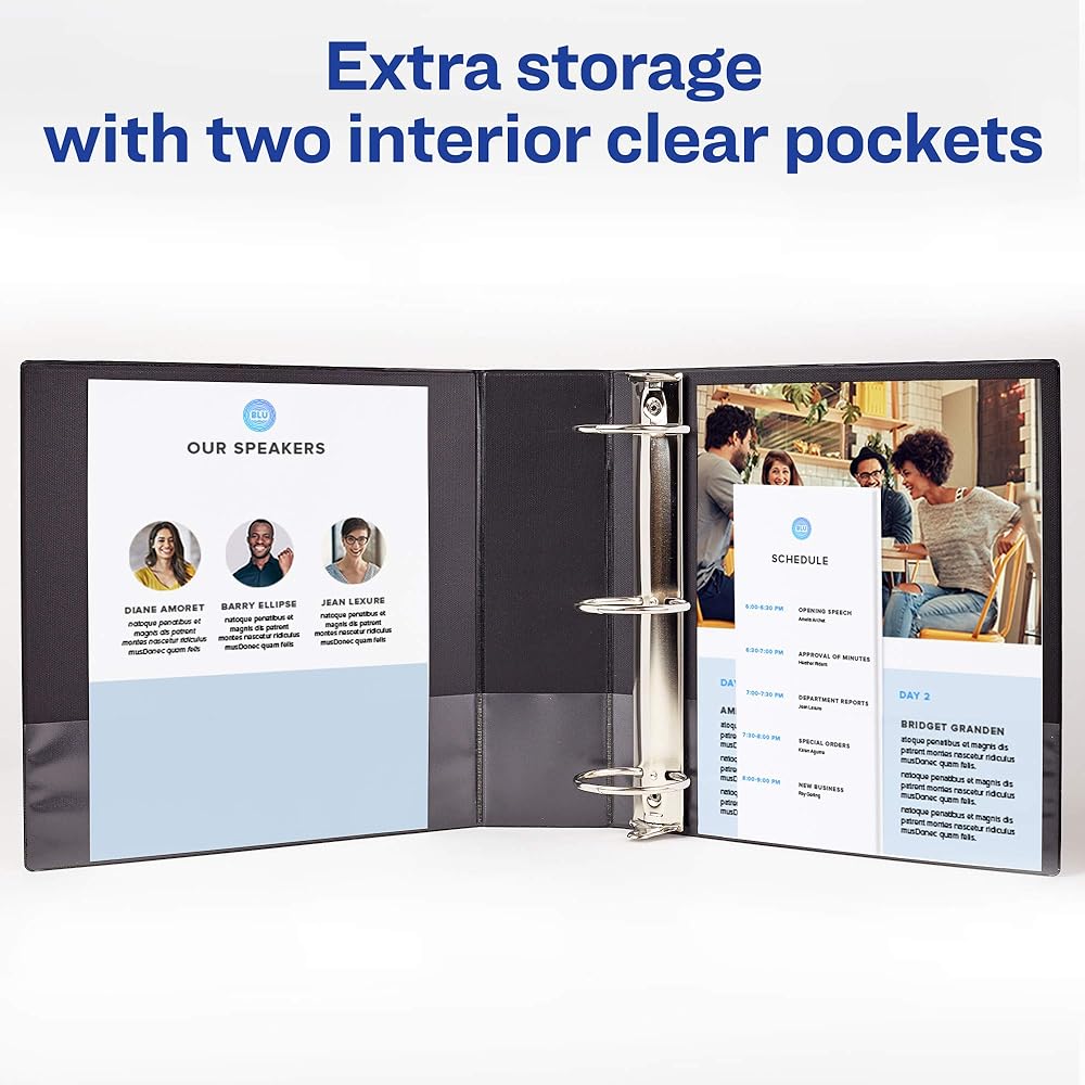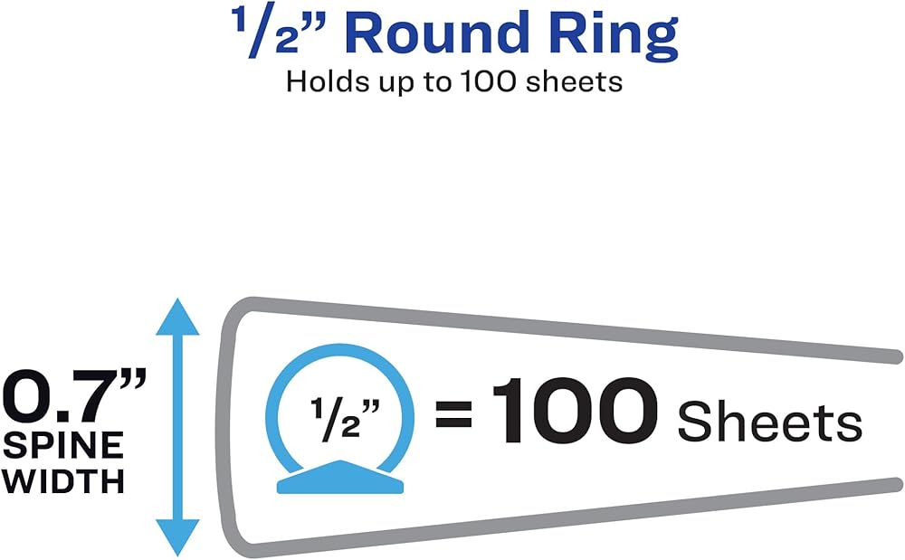Discover sturdy simplicity in a convenient and lightweight package. This Economy View Binder's 1/2" round rings hold up to 100 pages of 8-1/2" x 11" paper to offer a handy solution to your organization needs. Open and close the rings with ease to add or remove papers as needed. Tuck important handouts, pamphlets and other loose or unpunched paperwork into the two interior pockets for quick access. Put your personal stamp on the binder by designing a customized cover. You can find inspiration in the free, easy-to-use templates available at avery.com. Perfect for light use, this slim binder is the friend your papers never knew they were missing.