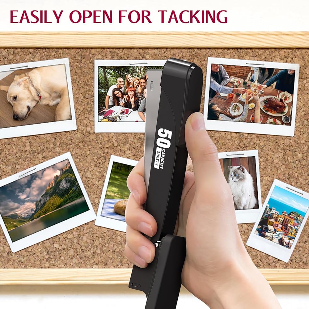 【Pinning & Tacking】: You can reverse the anvil for temparary pinning and open the stapler for tacking papers to bulletin boards.