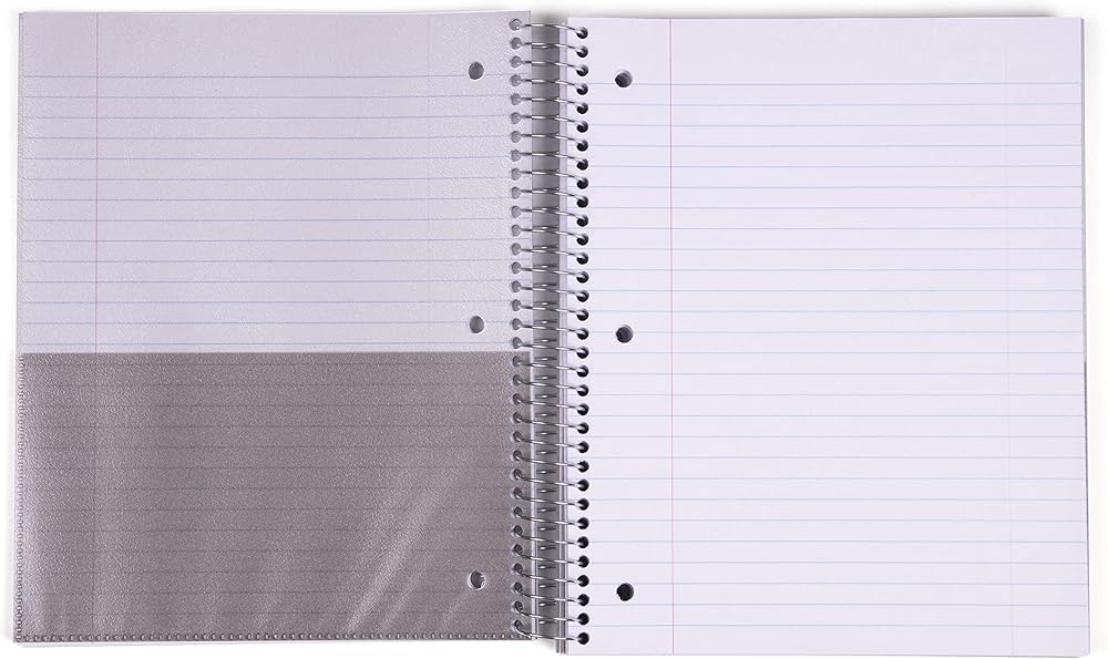 5 Subject Notebook with 200 pages, 5 durable pockets for organization. Perfect for school, work, or home. Spiral-bound, Coil Lock with a durable poly cover and versatile!