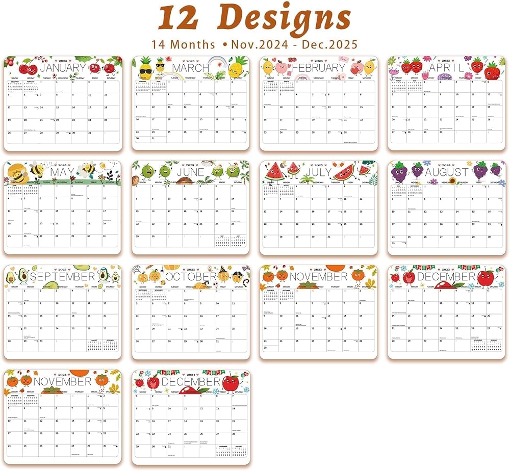 HIGH-QUALITY - Size -10 x 8 inches. 14 -month magnetic monthly calendar pad, Nov. 2023 - Dec. 2024. This refrigerator calendar pad provided with 12 interesting design. For walls, desks and refrigerators provide planners and calendars! Our durable magnetic monthly plan calendar is easy to hang and apply on the refrigerator or metal surface. It can also be used without magnetic and placed on the desk, and can be used with any kitchen.