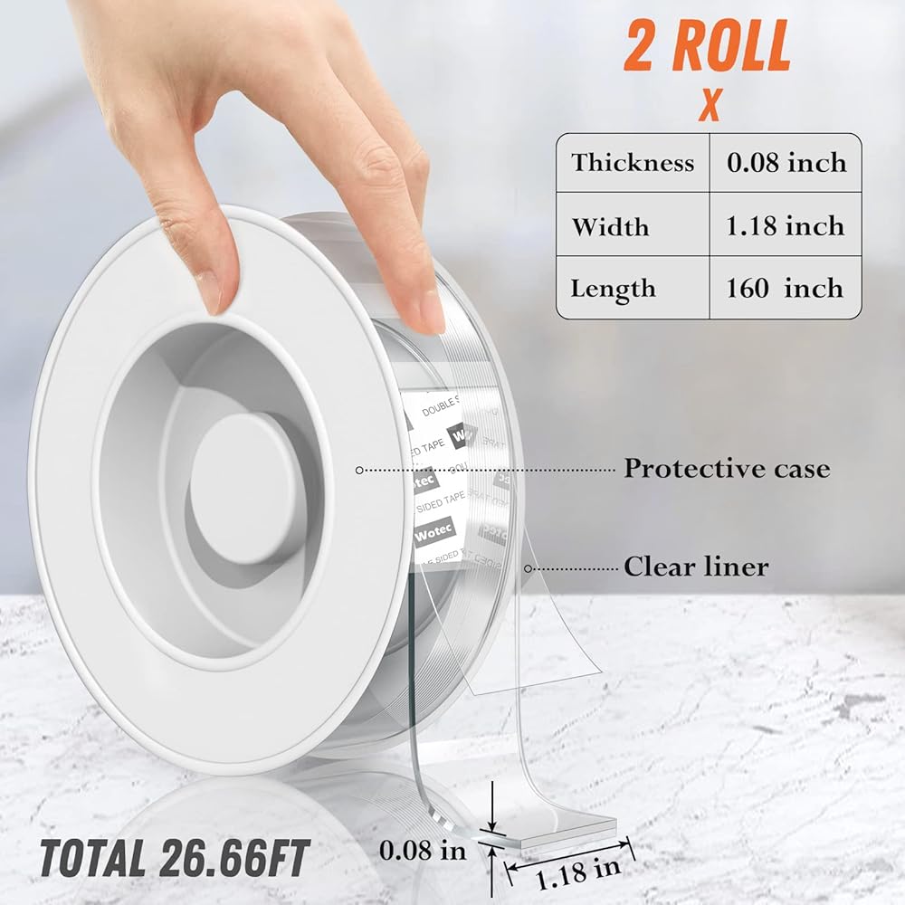 【Strong Adhesion】: Our heavy duty double sided tape is made of premium acrylic gel via advanced nano tech with great holding power. Getting your mounting activities done fast and securely without drilling and nails, a must have for dorm room essentials.