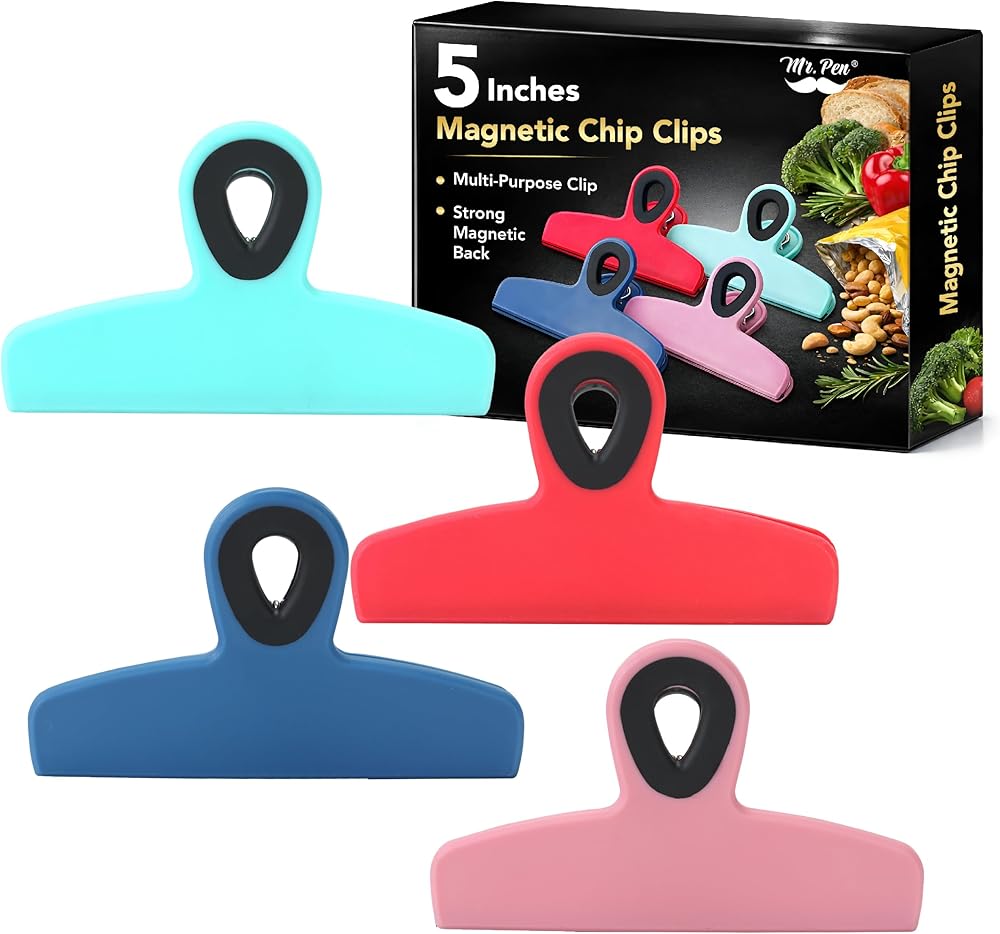 Mr. Pen- Magnetic Bag Clips, 4 Pack, 5" Wide, Heavy Duty Chip Clips for Food Storage, Durable Plastic with Strong Magnet, Non-Slip Grip for Fridge, Snacks, Kitchen, Office