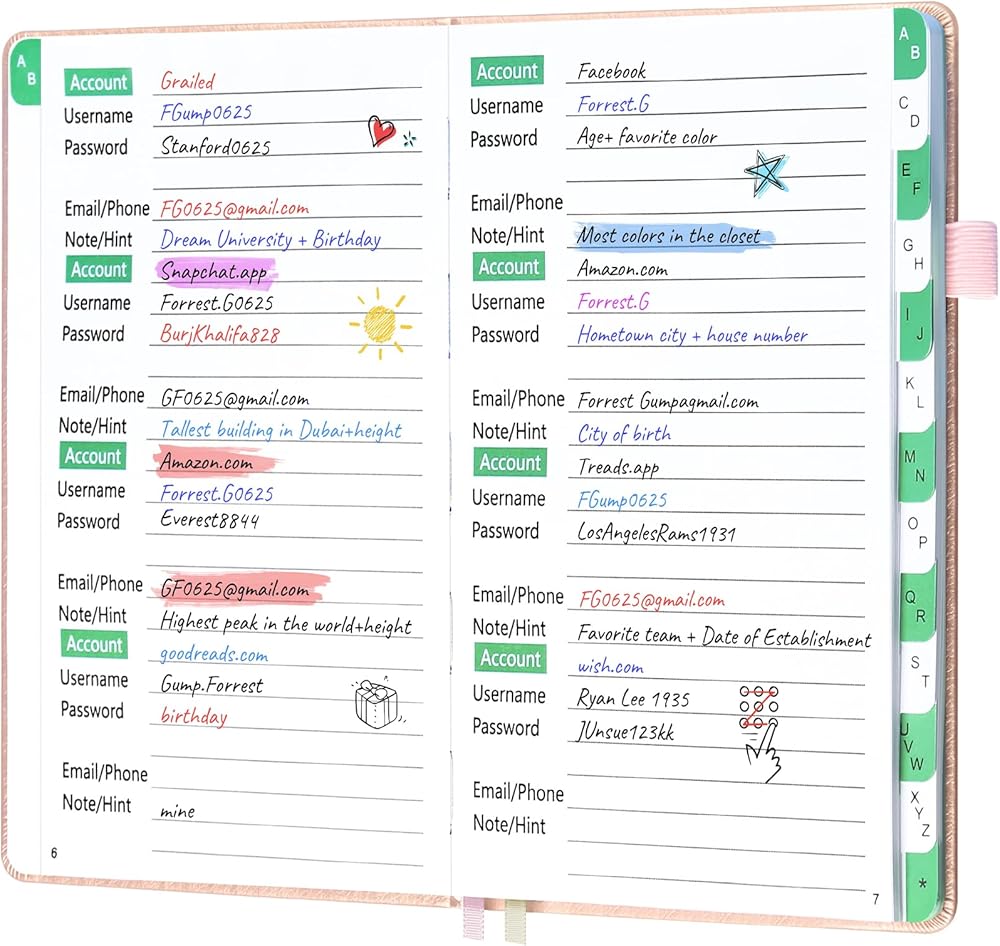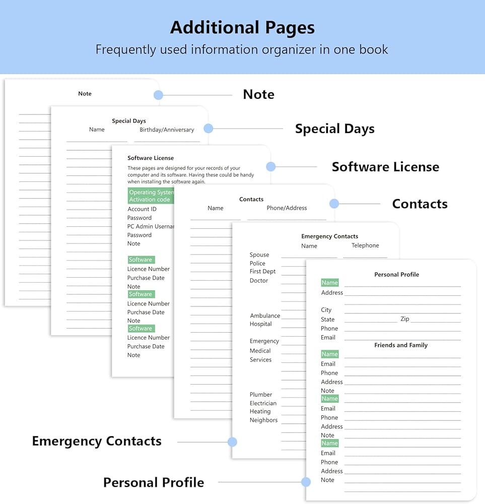 【Password Record】Manage all your accounts and passwords and website login details, including important events, special dates, web services, email settings and more. Never forget important information again.
