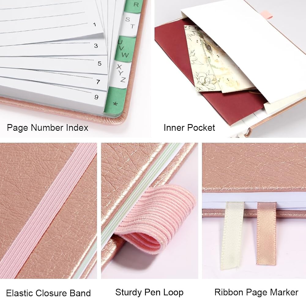 【Great Gift】An ideal gift for friends or family, premium PU leather cover, 100gsm paper, pen loop, inner pocket, elastic closure and ribbon page marker.