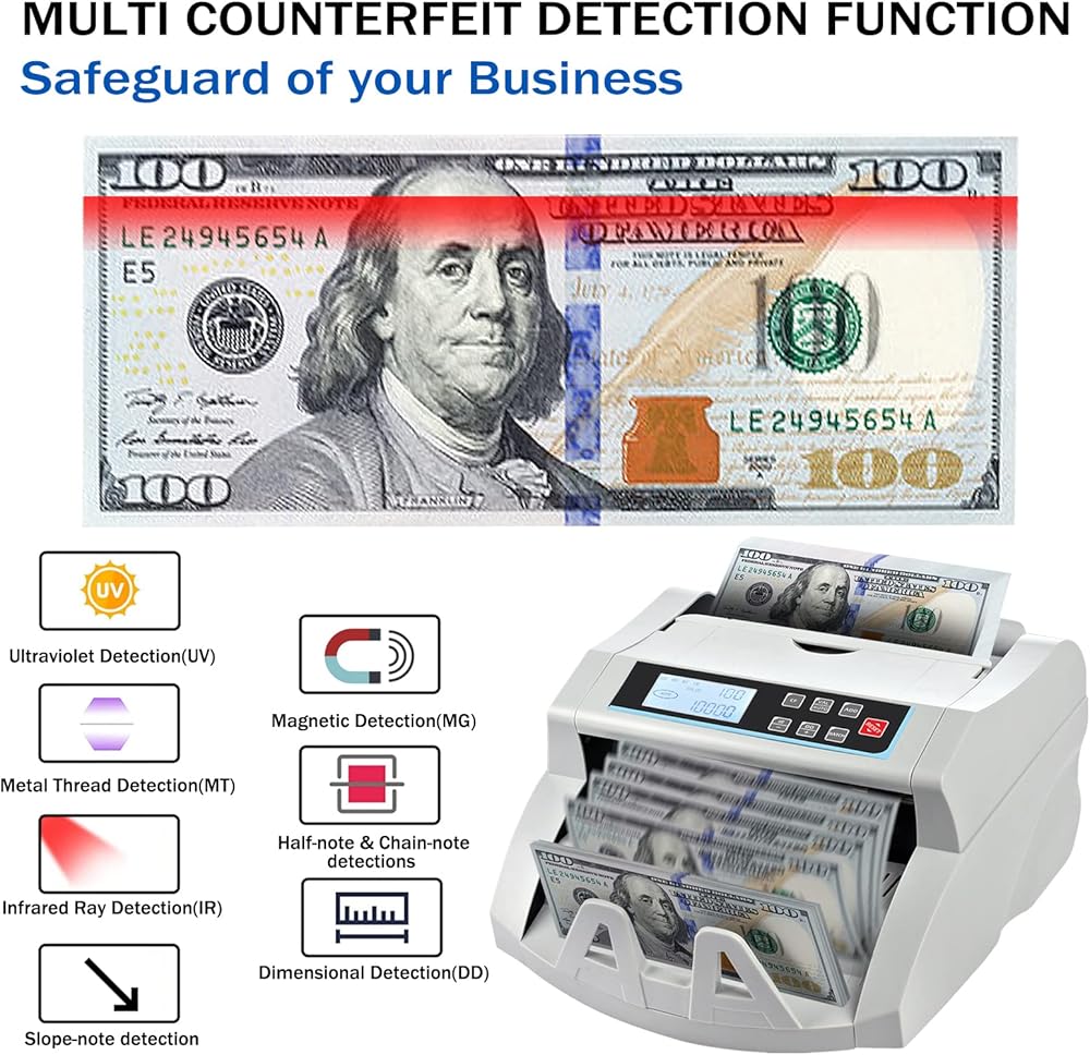 [Efficient and Accurate Counting] This money counting machine has a motor that can adapt to a wide voltage range from 100V to 240V to provide a reliable counter. With less than 60dB of noise, it can count money at a rate of more than 1200 per minute smoothly, rapidly, and precisely