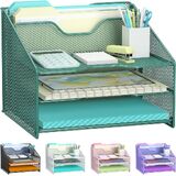 Samstar Desk File Organizer, Mesh Letter File Folder Holder with 3 Paper Trays and 2 Vertical Upright Section, for Office Supplies,Desk Accessories & Workspace,Black.