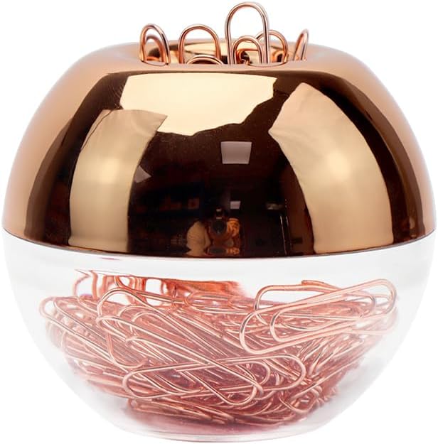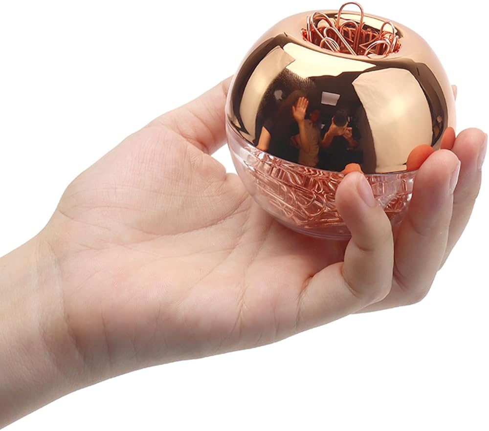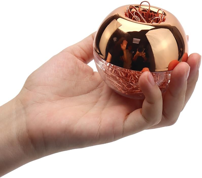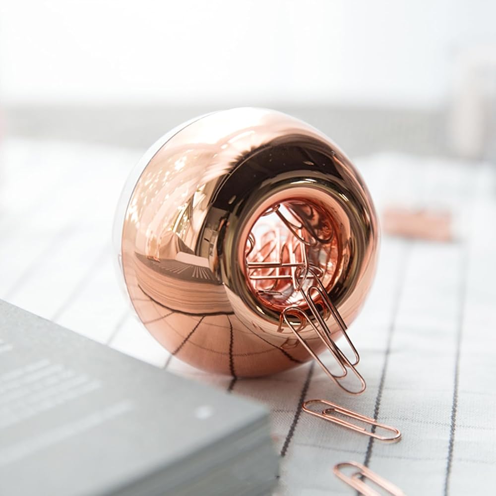 【FANTASTIC DESIGN 】 -- Luxury rose gold style paper clips dispenser holder with magnetic lid and round apple shape design, super fashion home & kitchen decoration accessories;