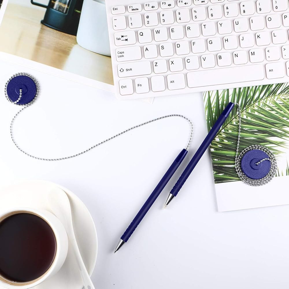 10 Pieces secure pen with adhesive pen chain and security pen holder for home office supplies, black ink