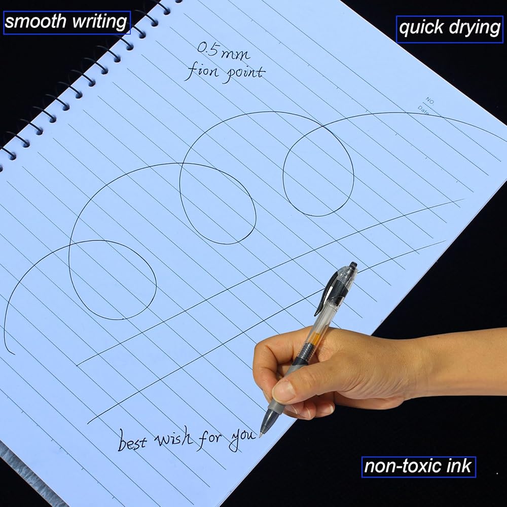 Smooth Writing Pens - 0.5mm fine tip gel ballpoint pen creates long lasting smooth writing, no bleed through, dry quickly.