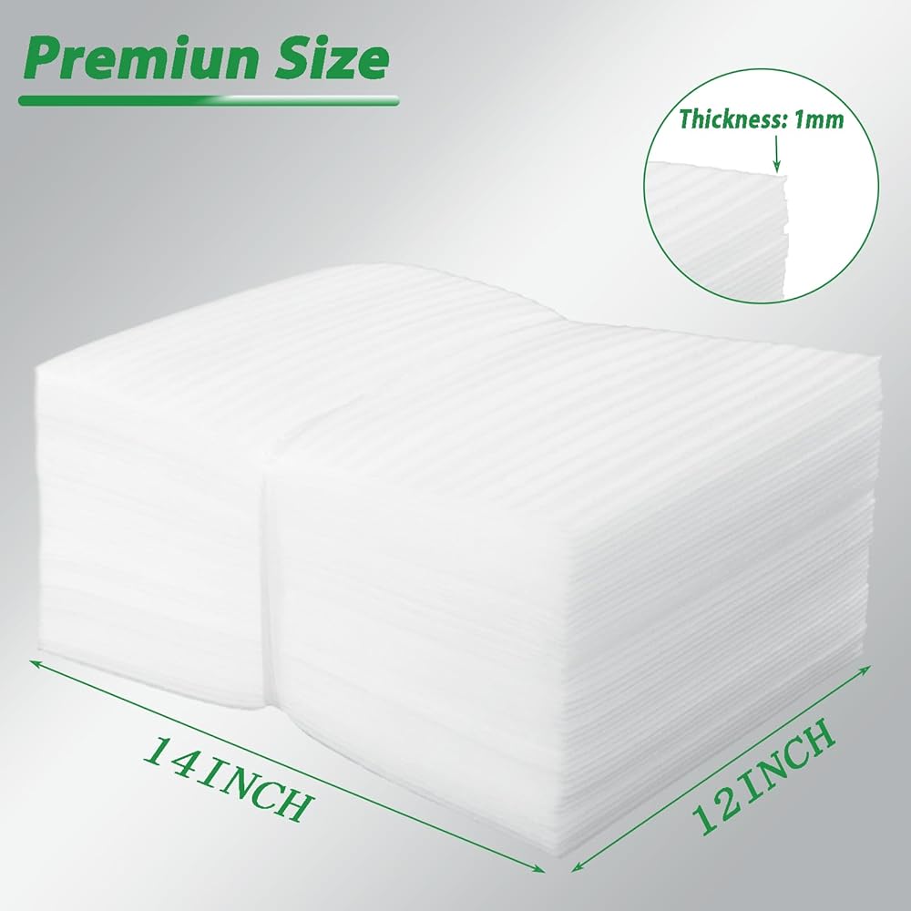 50pcs Foam Wrap Bags: Package includes 50pcs 10"x12" foam wrap pouches with each layer 1/24" thickness, total of one bag is 1/12Inch, which can provide the absolute protection for your fragile and delicate during moving or packing.