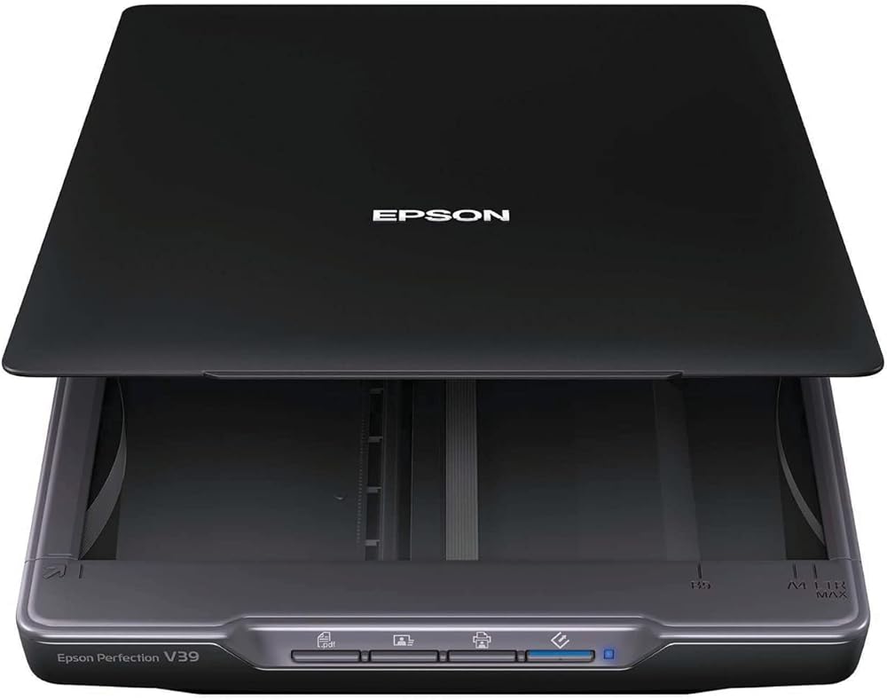 Make scanning simple with the affordable, compact and lightweight Epson Perfection® V39 II. Featuring an optical resolution of 4800 dpi1, this easy-to-use photo scanner delivers amazing clarity and detail at a great value. With the included Epson ScanSmart® software2, you can scan photos, artwork, illustrations, books, documents and more to cloud storage services3 as well as stitch together oversized images. Moreover, if your photos have faded, you can bring back the color in one click with Easy Photo Fix® technology. The V39 II delivers high-quality letter-sized scans in as fast as 10 seconds4. It also includes convenient one-touch scanning with easy-to-use buttons3, so you can scan directly to PDF or email with just the touch of a button3. In addition, you can create editable Microsoft® Word, Excel® and PowerPoint® files using optical character recognition (OCR) software3. The V39 II is USB powered for portability, includes a built-in kickstand for space-saving vertical placement and storage, and features a high-rise, removable lid to accommodate bulky items such as books and photo albums. Meet the nexus of stunning image quality and great value with the Epson Perfection V39 II.