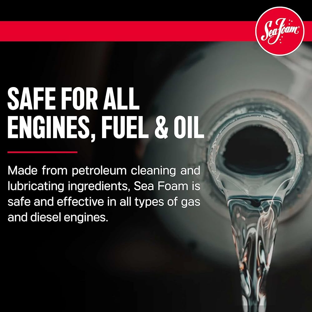 Sea Foam Motor Treatment is a 100 percent pure petroleum product that safely and effectively cleans internal fuel and oil system components, helping your gasoline or diesel engine run cleaner and more efficiently. Sea Foam is an EPA-registered product, and will not harm engine components, seals, gaskets, catalytic converters or oxygen sensors. Liquefies gum and varnish deposits or internal engine contaminants, removing carbon deposits, freeing sticky valve lifters and rings, improving idle quality, pinging and hesitation problems. By using Sea Foam to eliminate varnish and carbon buildup, mechanics can more accurately diagnose mechanical problems that may exist. That is why Sea Foam has been so popular with professional mechanics for over 65 years. As a fuel system additive, Sea Foam will clean carburetors, fuel injectors, clean carbon, gum and varnish deposits, adds lubricity to fuel, stabilize fuel for 2 years and control moisture. As an oil system additive, Sea Foam controls moisture, gum, varnish and residue deposits.