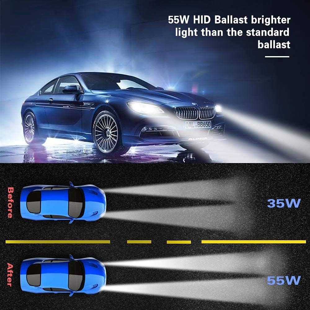 【HID Ballast 55W 】 New DC Chip sest, IP68 Water Seald.It will work in any weather conditions.0-30% brighter light than the standard ballast.