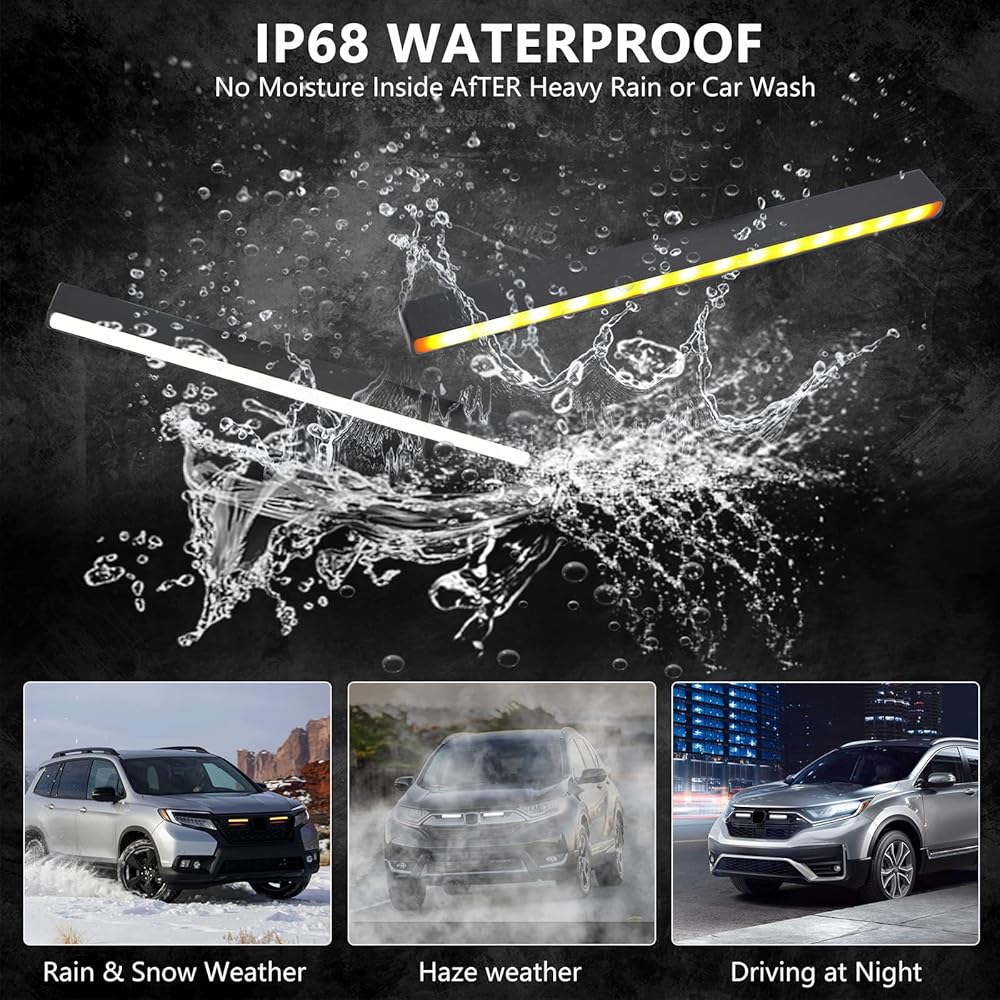 29 Led lamp beads: The light strip equip with 15pcs white SMD LEDs lights for brake tial light feature, and 14pcs amber yellow SMD LEDs lights for daytime running light feature