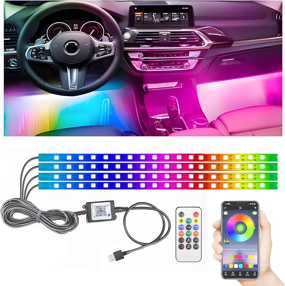 5.7FT LED Interior Light for Car, 48LEDs RGB USB Under Dash Lighting, Footwell Neon Internal Lights Kit, Smart APP and Remote Dual Control, Multicolor Music and Mic Mode
