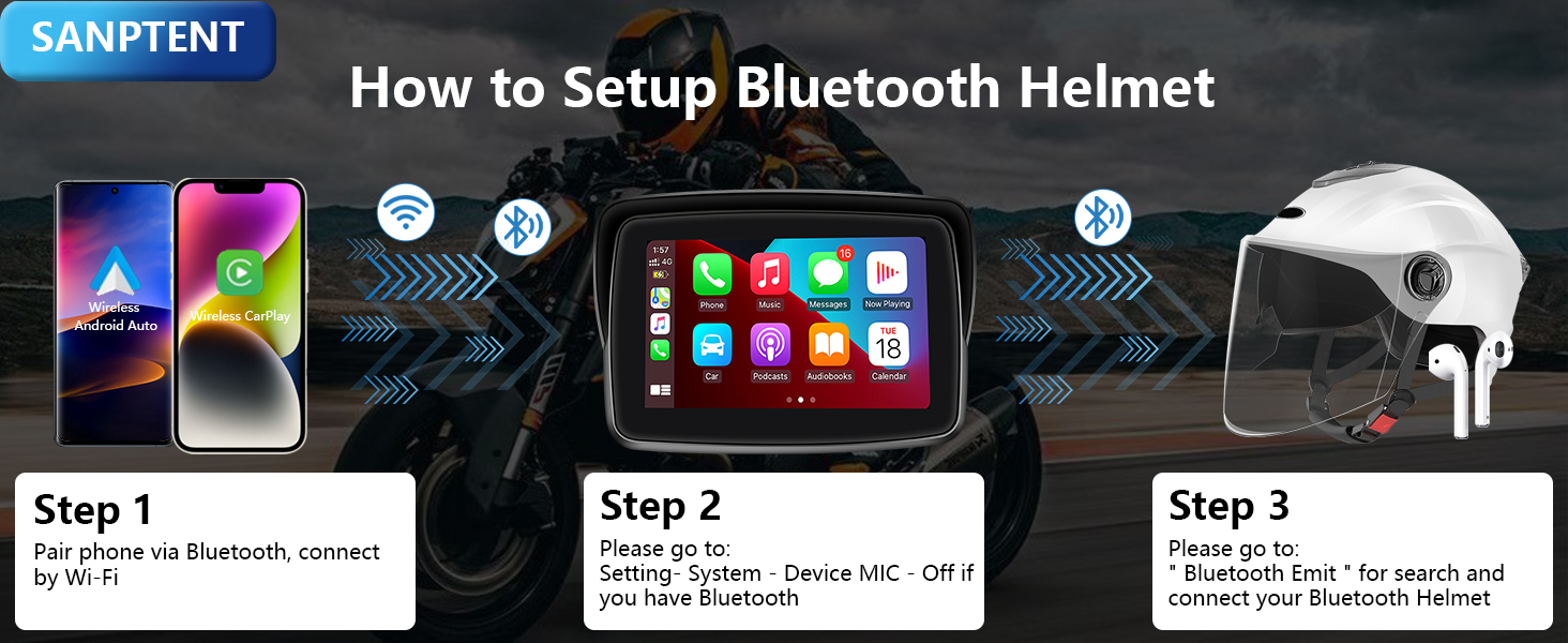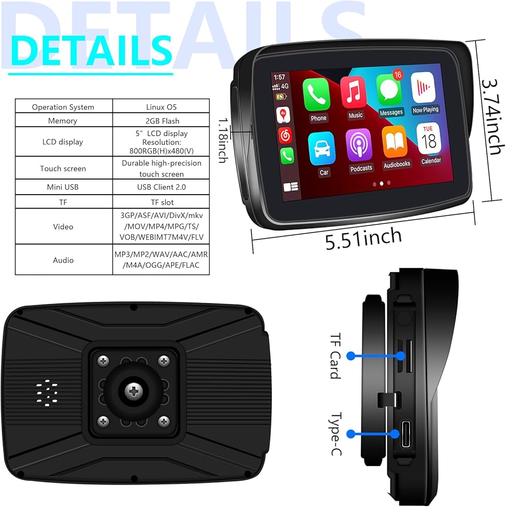 🏍️Built-in Dual Bluetooth: The portable Apple Carplay device features built-in dual Bluetooth capabilities. You can pair your phone with the Carplay touch screen via Bluetooth, and then connect the unit to your Bluetooth helmet or earphone. With this setup, you can control the volume, switch songs, and make hands-free calls using your helmet or earphone.