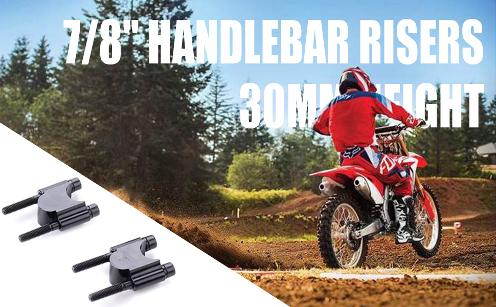 Functions and Features:Our 7/8" risers are made from high-quality CNC aluminum with anti- rust bolts. Extend height, 30mm(1.2 inches)Provide Comfortable - Extend 30mm(1.2 inches) height to provide you a comfortable riding position. Fits well and easy to install.