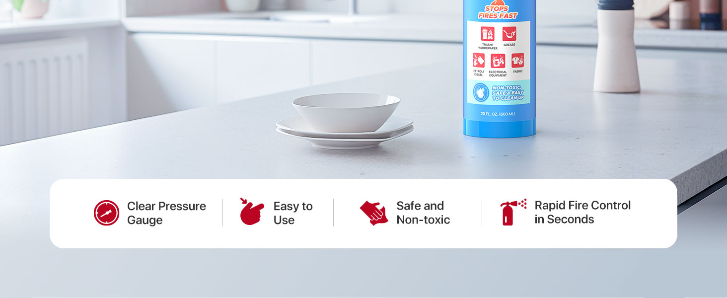Safe and Easy to Clean: With a non-toxic, harmless, and biodegradable formula, this fire extinguisher effectively protects essential items in your home, all while preventing reignition; after use, a simple wipe ensures easy cleaning