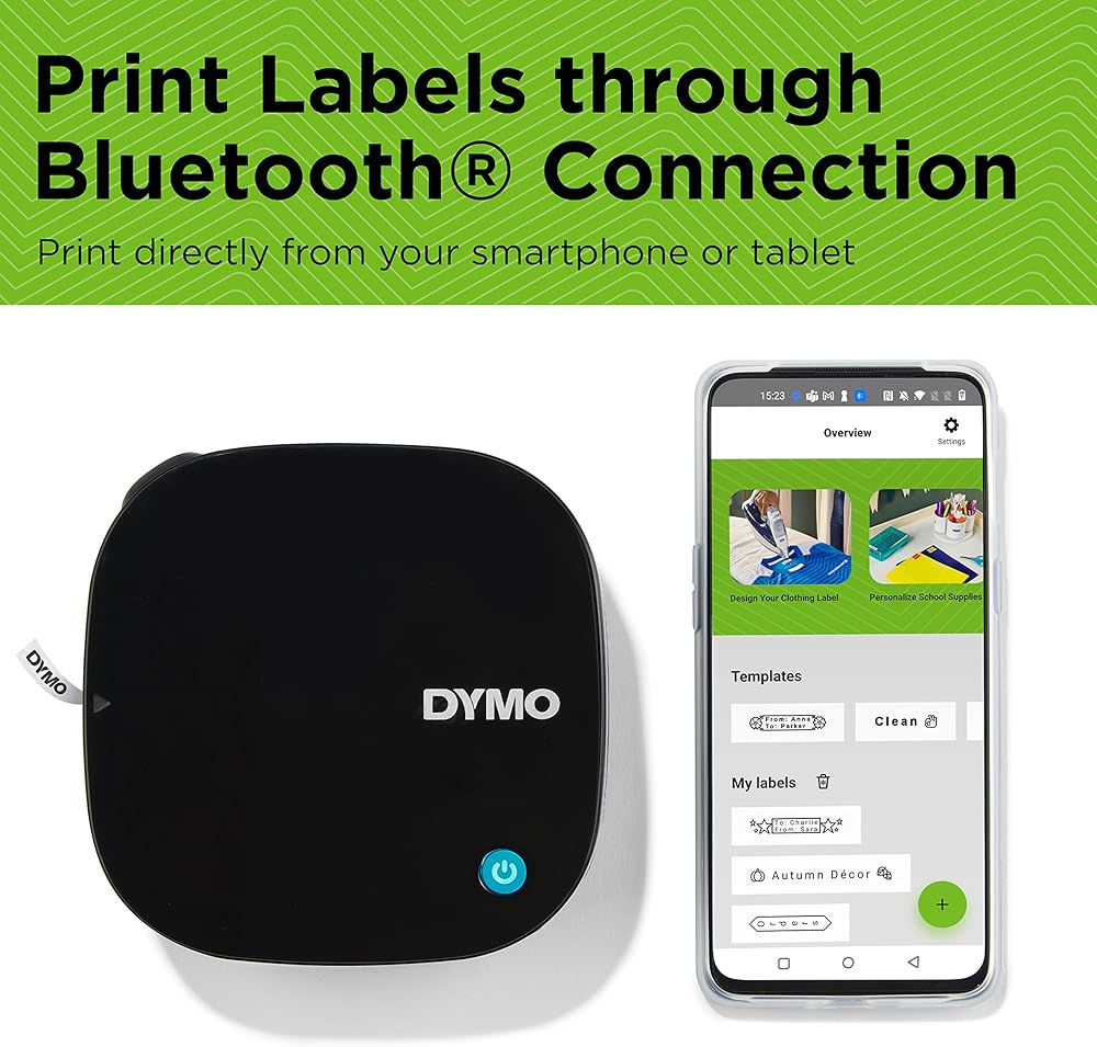AUTOMATIC BLUETOOTH CONNECTION: Label printer is ready in seconds to create labels directly from your Apple or Android smartphone* using an intuitive DYMO app