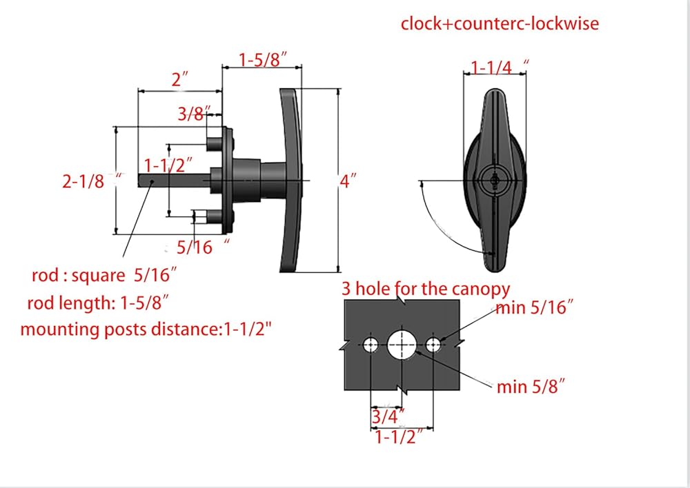 ★【Mounting Compatibility】:Clockwise to open,T-Handle Rotation: 90CW Blind mount with 3/8" Lugs,dust cover for the keyhole and a dust shield to keep dust and rain out