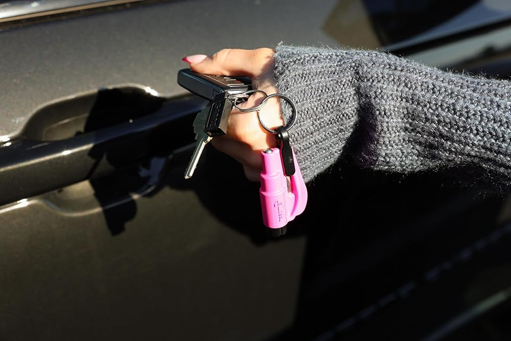 resqme The Original Emergency Keychain Car Escape Tool, 2-in-1 Seatbelt Cutter and Window Breaker, Made in USA, Family Pack of 3, Pink, White, Teal - Compact Emergency Hammer
