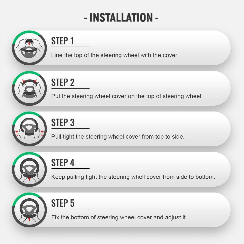 Universal Size: Suitable for all medium-sized steering wheels with a diameter of 14 1/2 inch to 15 inch (37 cm to 39 cm). If you are not sure whether your steering wheel is suitable, please contact us, we provide 24 hours service.