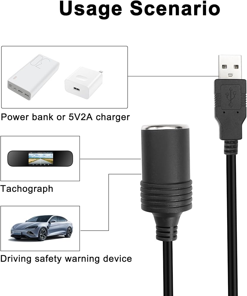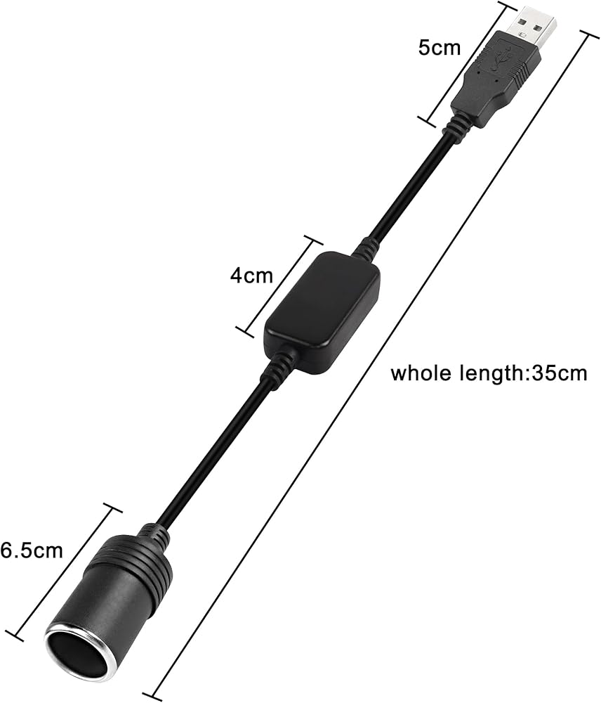 • USB A to cigarette lighter female connector cable is small and portable, perfect for use at home and traveling with small devices in the car.