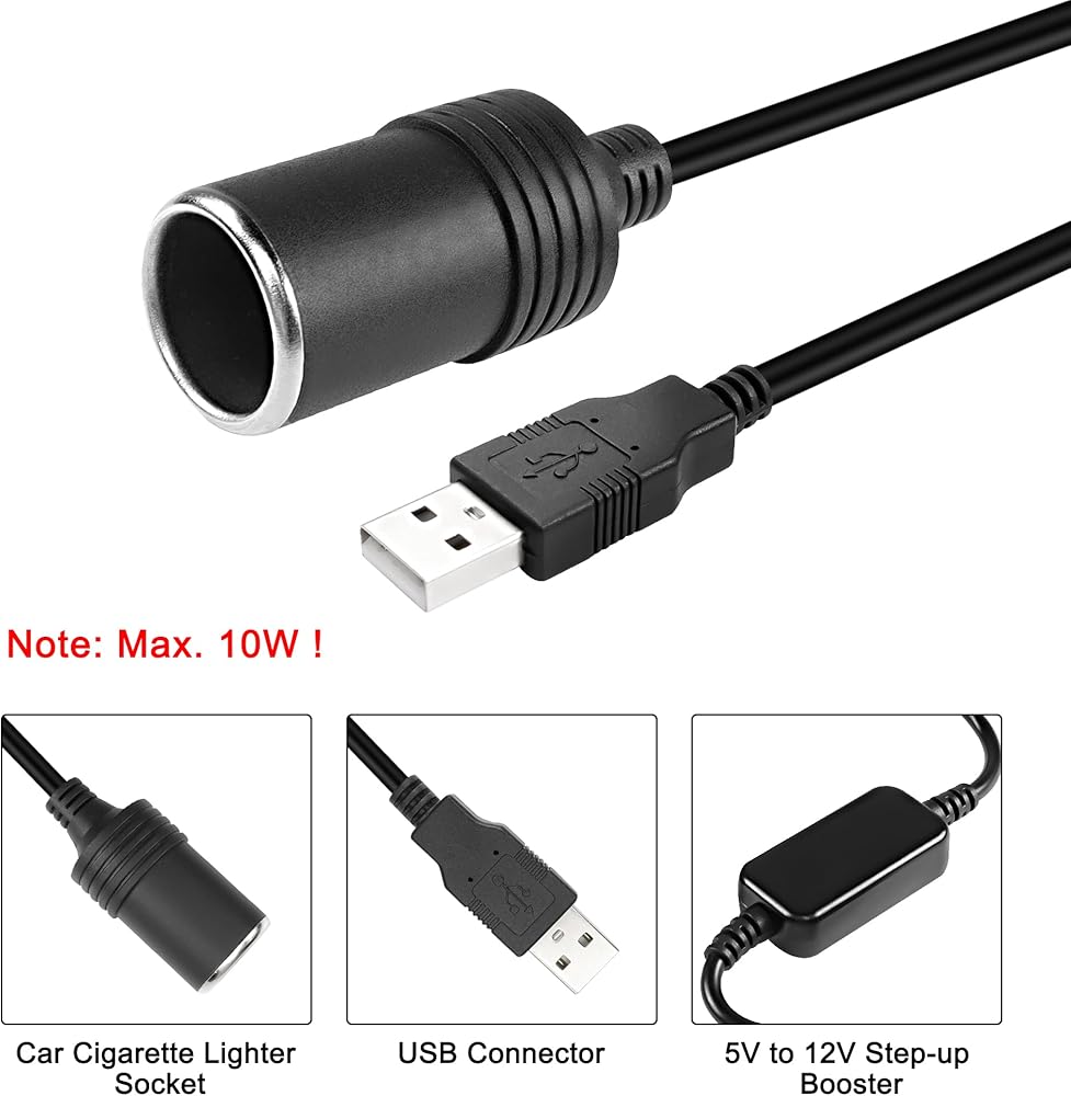 MEIRIYFA USB to Cigarette Lighter Socket Converter for Car,USB A Male 5V to 12V Step Up Car Cigarette Lighter Female Adapter Cable for Car Driving Recorder,GPS,E-Dog