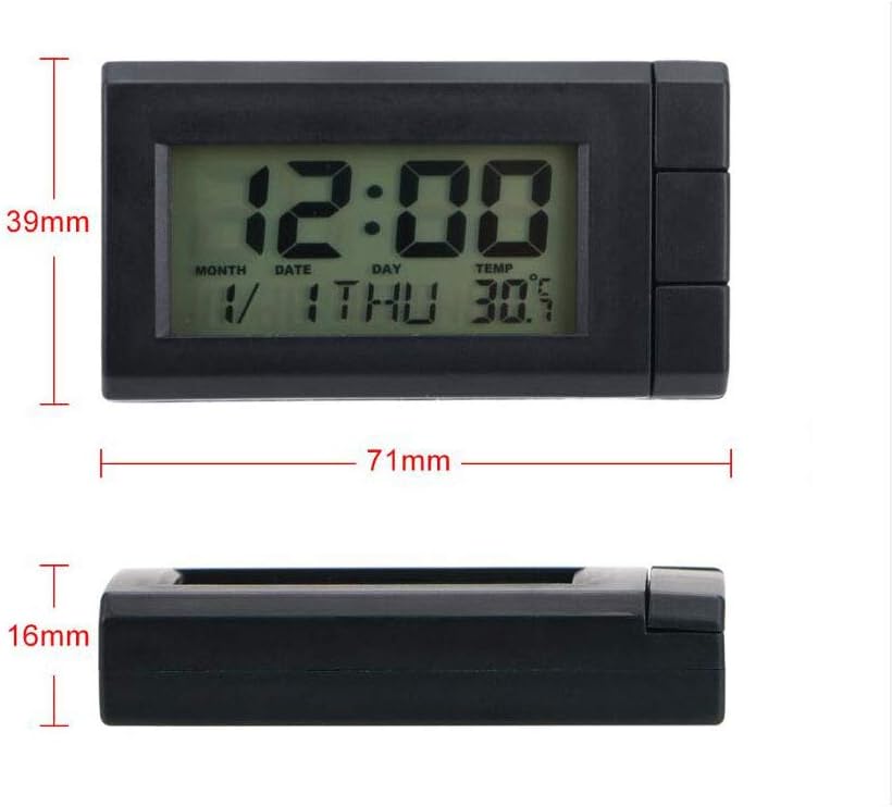 1. The mini clock measures approx: 72 x 16.6 x 39mm(L xW x ) , Built-in Digital Clock and Temperature Gauge, driver can learn the time and temperature conveniently.