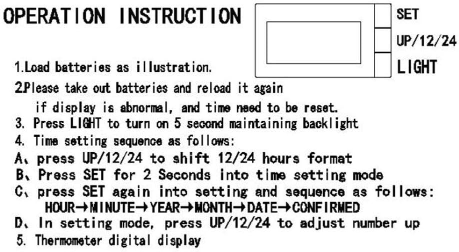 Specifications: Clock/Month/Date/Thermometer