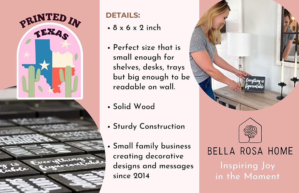 بيلا روزا هوم تبحث على نطاق واسع عن أفضل الاقتباسات التي تناسب الزوايا والمناطق الصغيرة في منزلك! يبلغ عمق لافتة المكتب هذه 6 انش × 8 انش × 2 انش وهي الحجم المثالي للجلوس على الرف أو تعليقه على الحائط. شعارنا هو: إلهام الفرح في اللحظة! يقوم متجر الطباعة العائلي الخاص بنا في ماجنوليا، تكساس بطباعة التصميمات وتعبئتها لك للشحن في جميع أنحاء العالم.