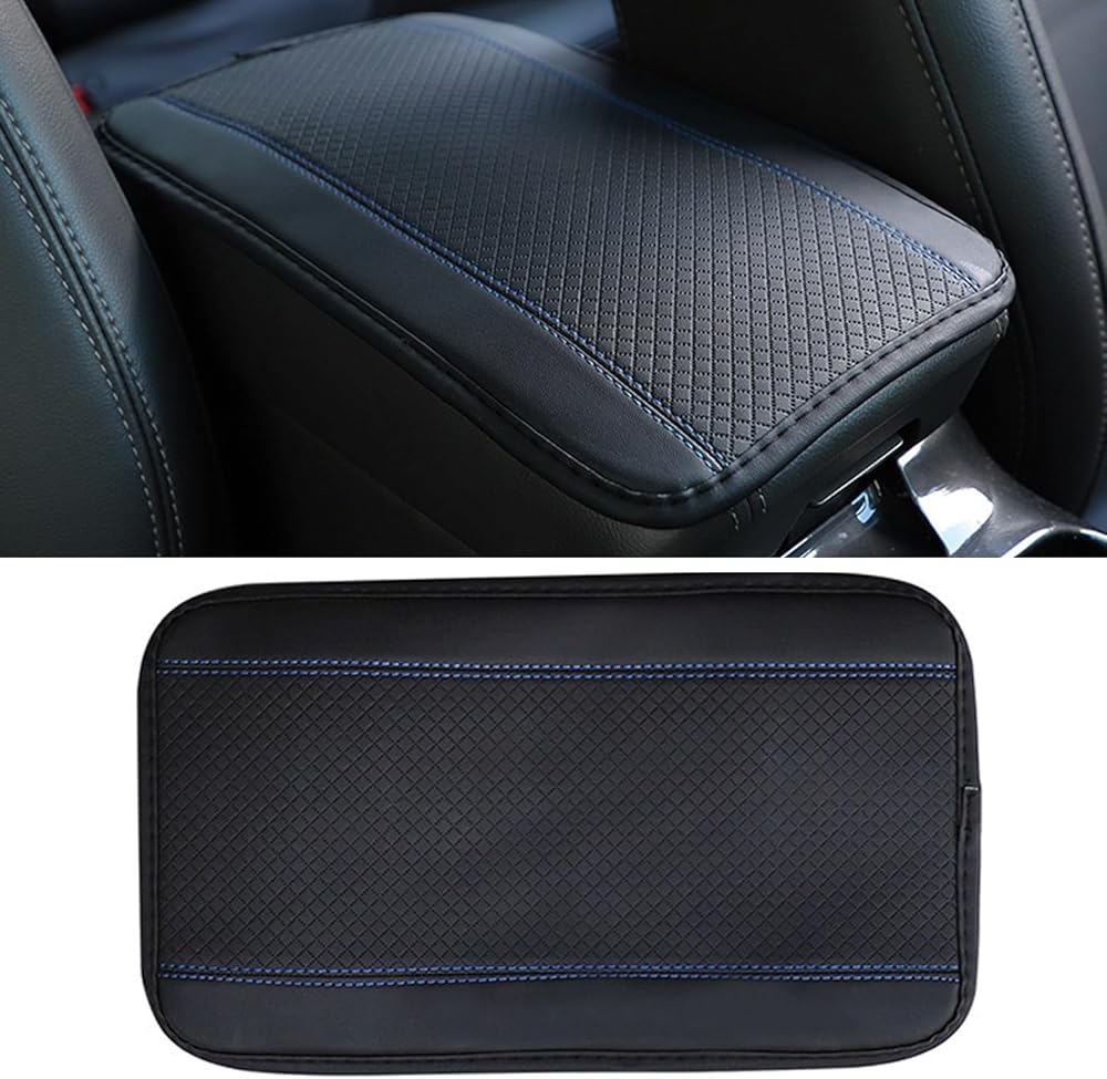 Car Center Console Cover, PU Leather Car Armrest Box Pad, Universal Waterproof Auto Armrest Seat Box Protector, Interior Car Accessories for Most Car, Truck, SUV (Black-Blue)
