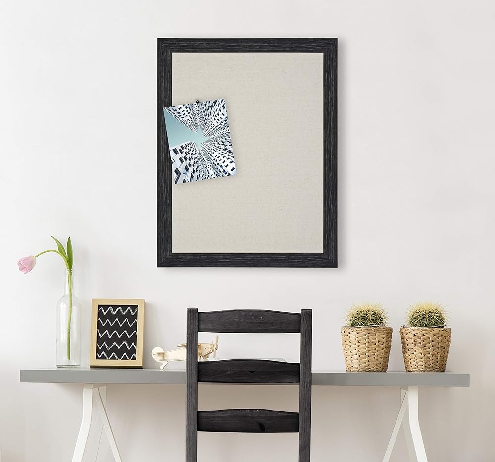 AMPLE SURFACE: Pinboard surface is 27.5 inches by 27.5 inches; Frame profile is 1.75 inches wide by 1 inch deep